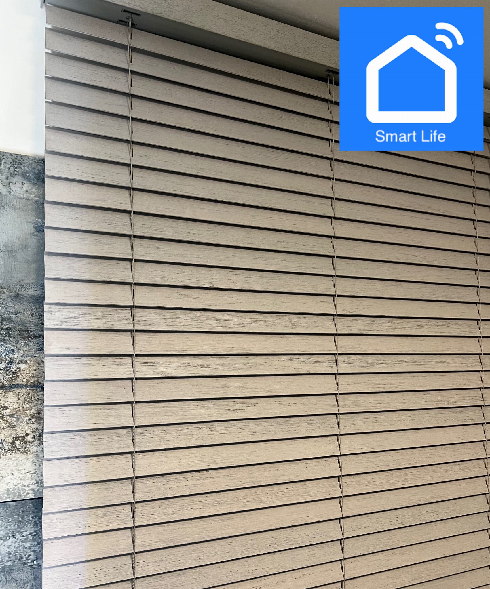 Żaluzja pozioma wewnętrzna drewniana 50 mm z napędem elektrycznym Torro RF + Tuya wifi + pilot.
